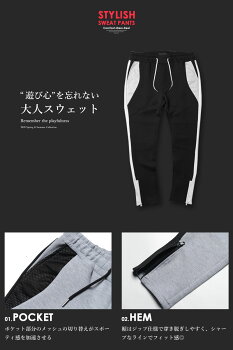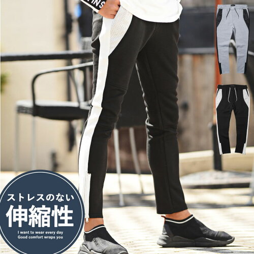 ◆サイズ◆ 【Mサイズ】ウエスト約76〜84 調整可/股下68cm/股上27cm/もも幅27cm/裾幅14cm 【Lサイズ】ウエスト約84〜94 調整可/股下70cm/股上29cm/もも幅28cm/裾幅14.5cm モデル:身長178cm 体重65kg 着用サイズ:L SIZE ◆カラー◆ ブラック・グレー ◆素材◆ ポリエステル 95% ポリウレタン 5%◆商品詳細◆ 見た目はスタイリッシュ、生地はジャージで最高のリラックス感とストレスのない自由な着用感を得られる裾zipサイドラインパンツ。